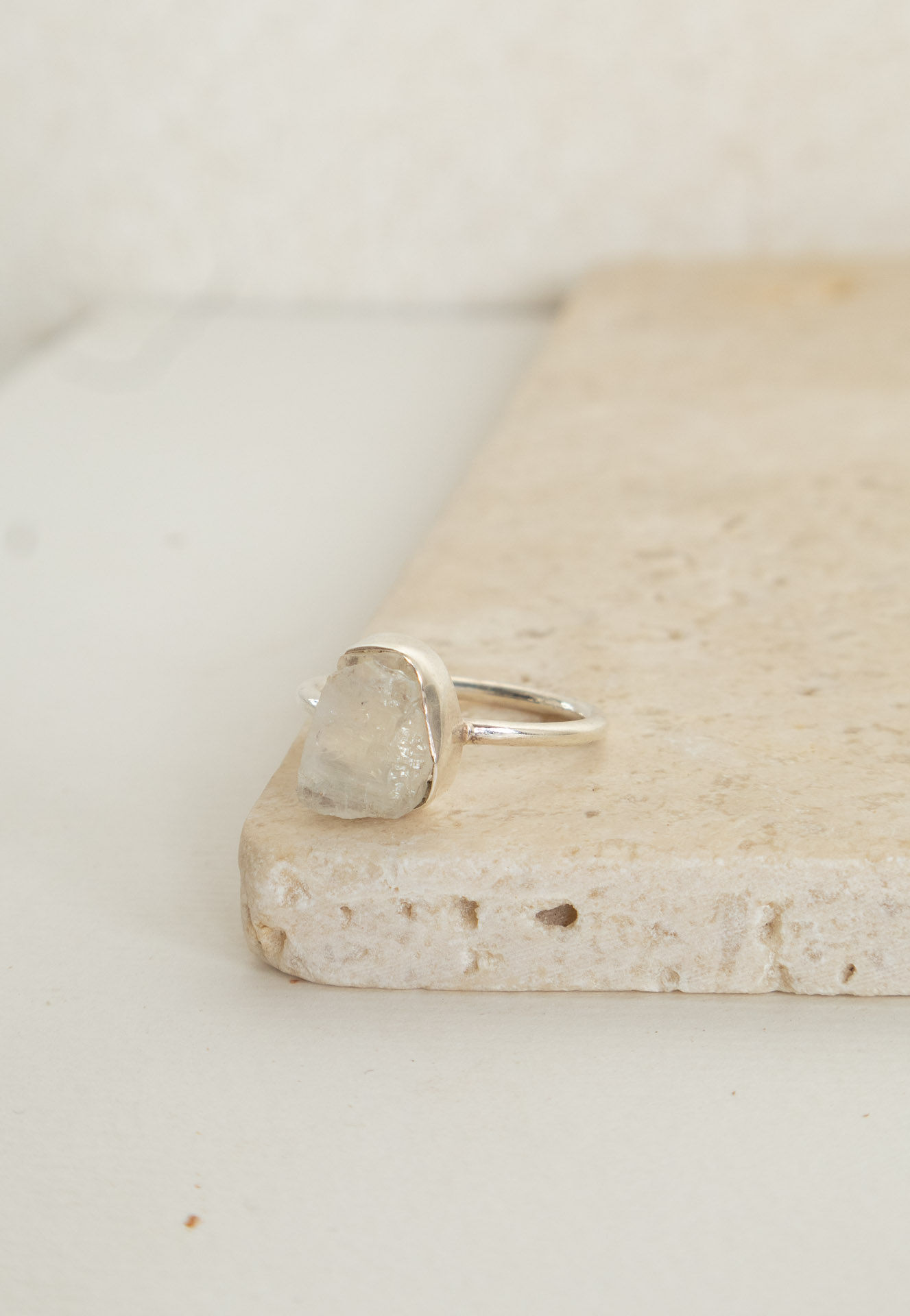 ANEL PEDRA DA LUA BRUTA PRATA 925 ARO 20