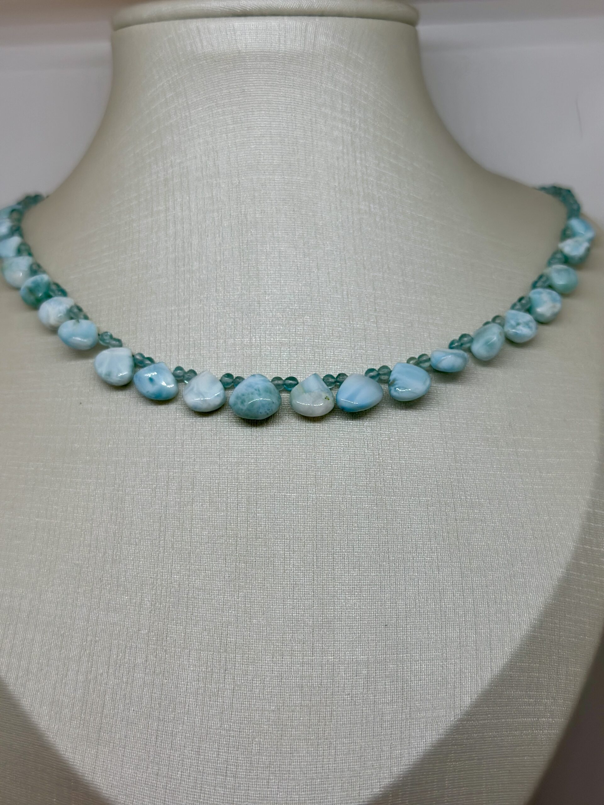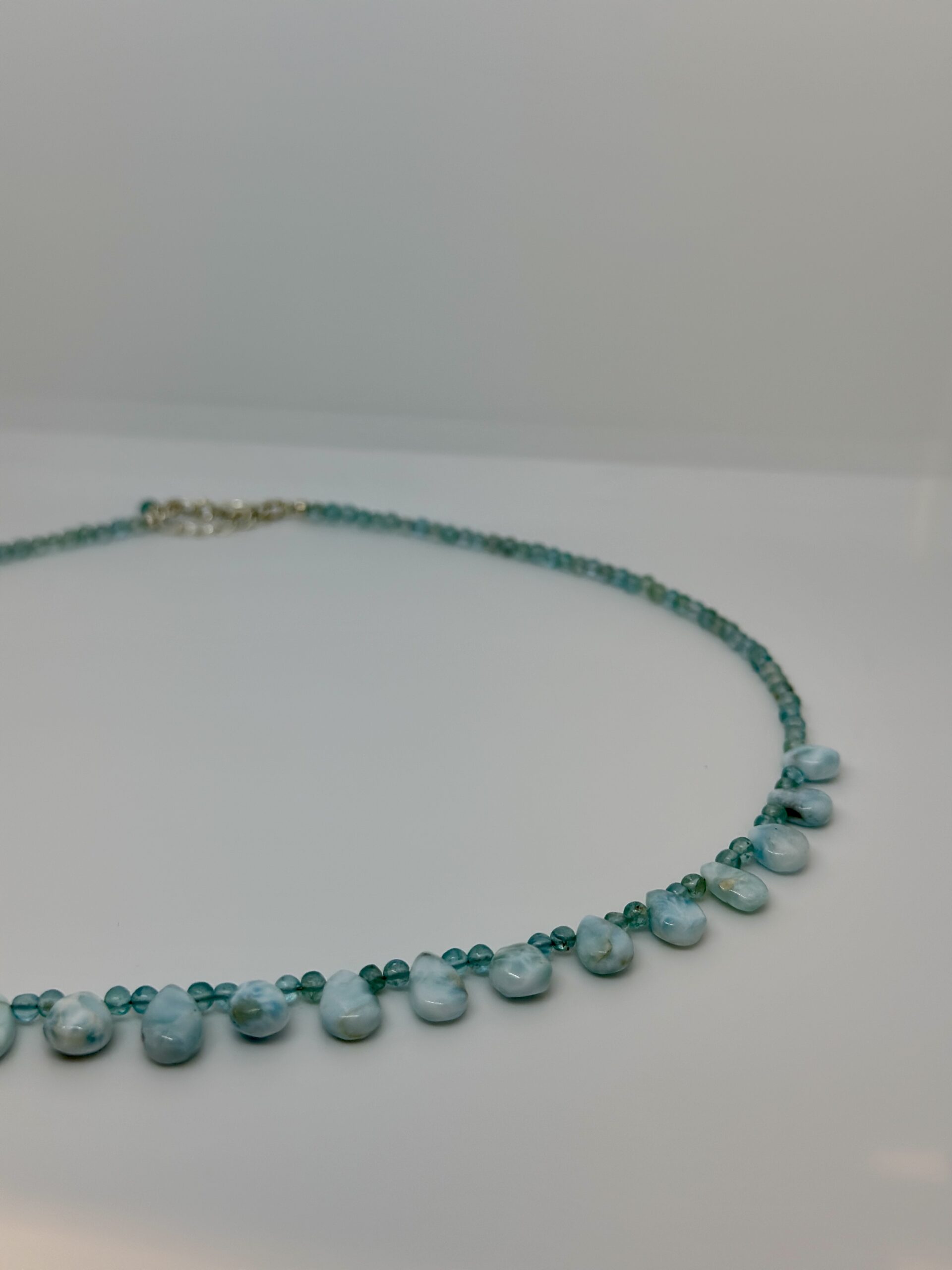 Choker fio de Água Marinha intercalados medialmente com pedras de Larimar