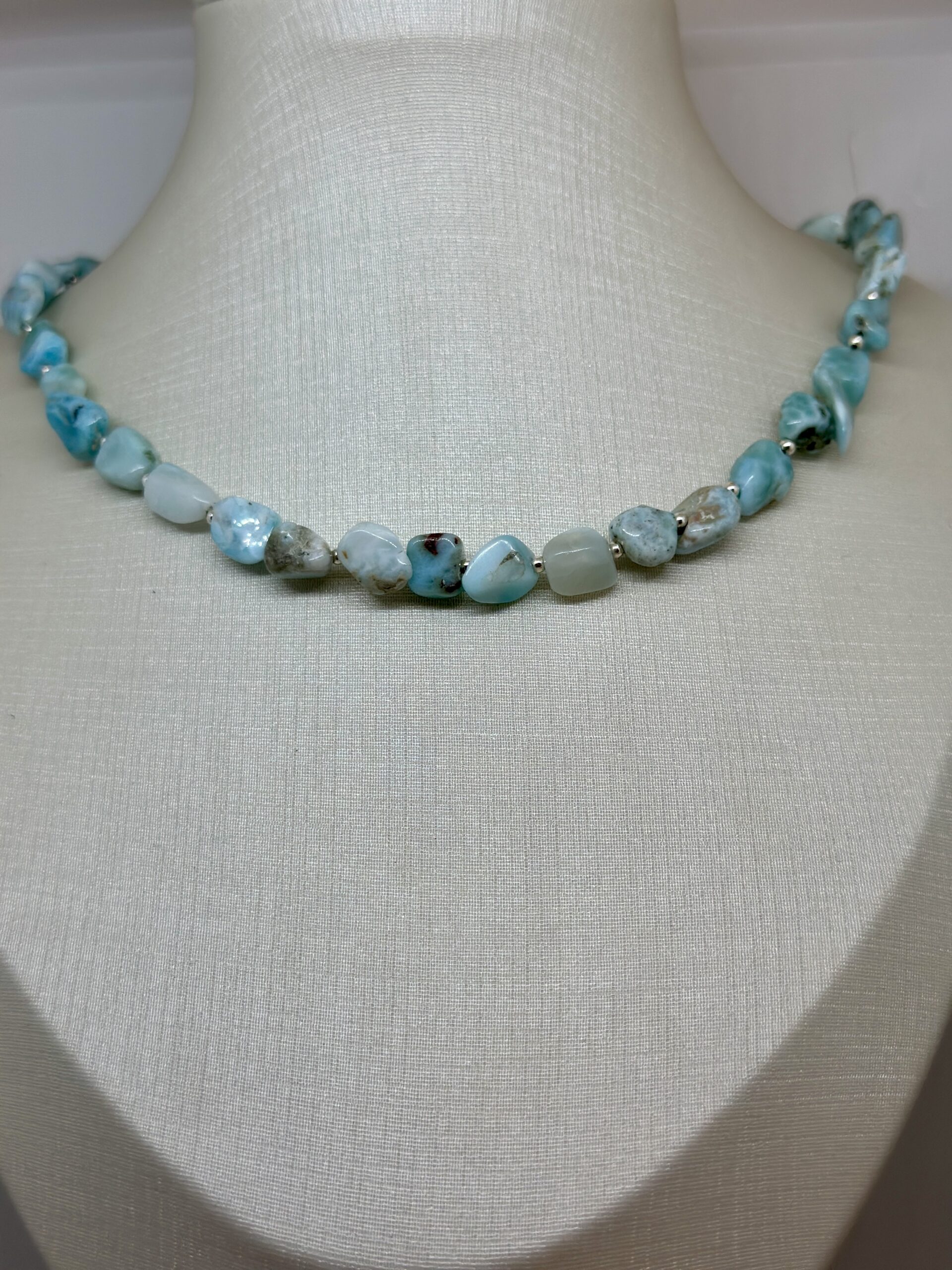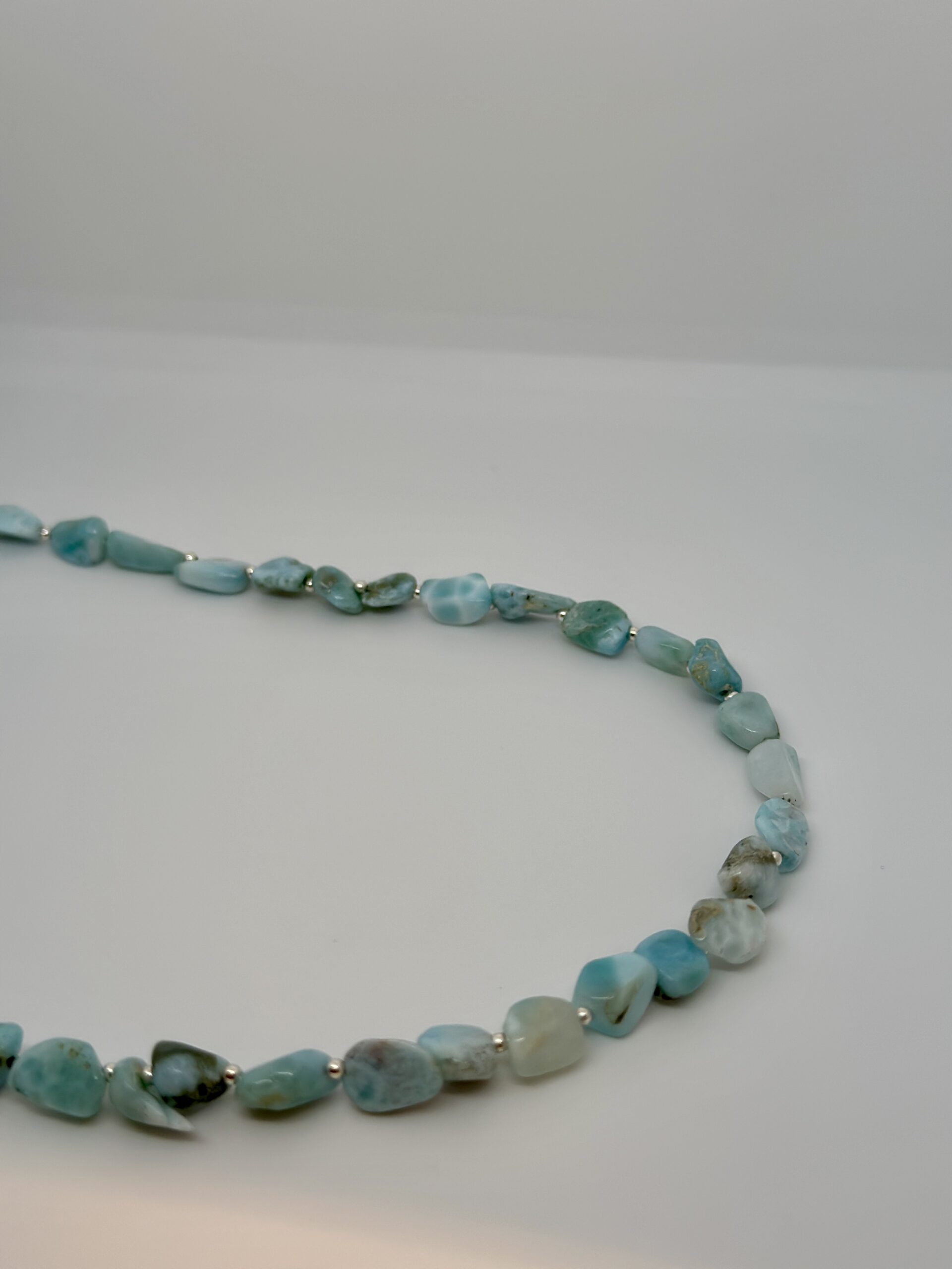 choker fio de Larimar bruta intercaladas com bolinhas em prata 925.