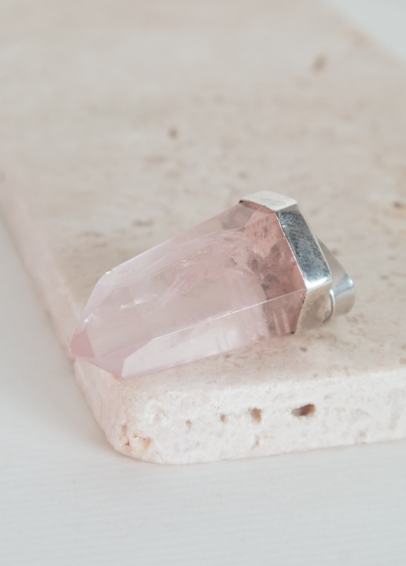 PINGENTE AUTORAL PÊNDULO QUARTZO ROSA NA PRATA 925