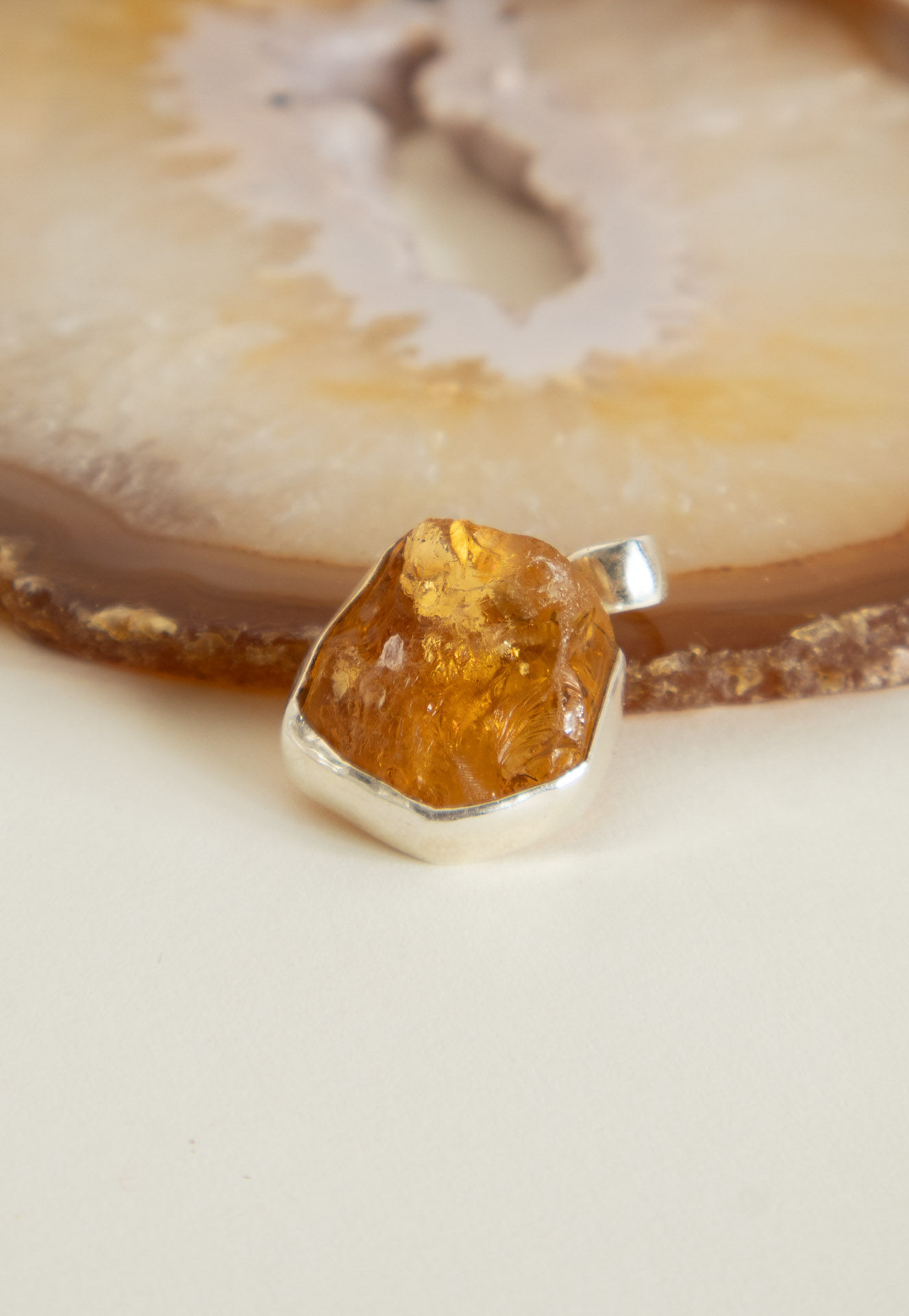 PINGENTE EM CITRINO BRUTO NA PRATA INDIANA 925
