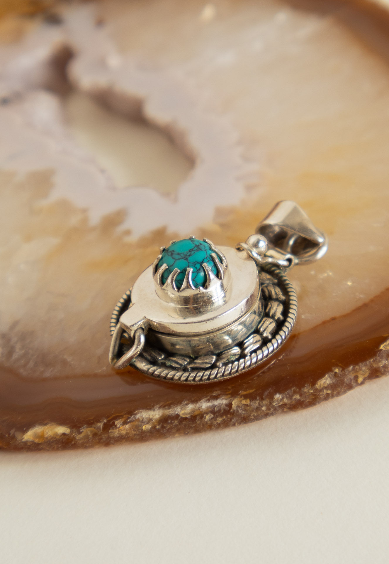 PINGENTE RELICÁRIO NA PEDRA TURQUESA NA PRATA 925